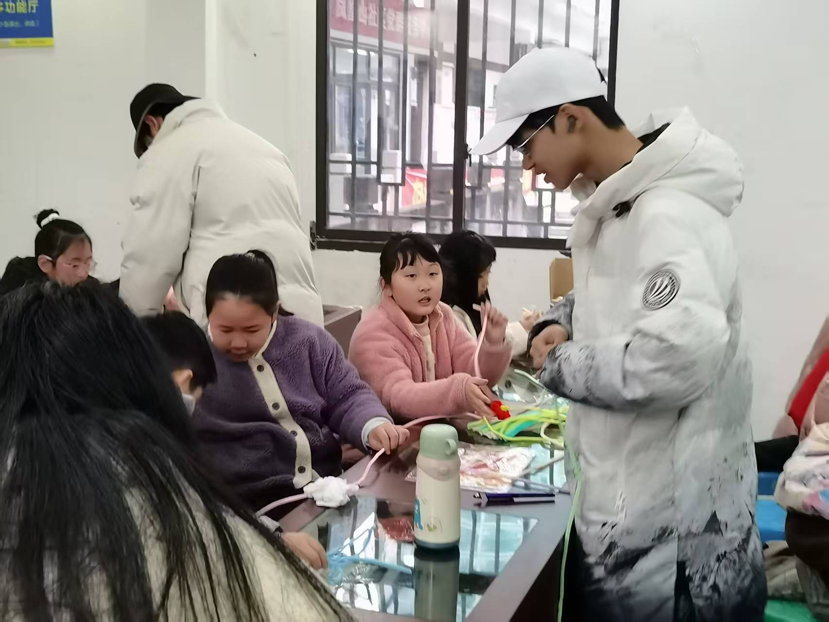 实践团指导小朋友们进行手工制作