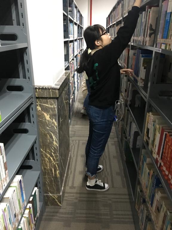上午九点,志愿活动正式开始。由赵亚对学生进行分组,并在图书管理员的带领下很快熟悉工作内容。图书馆的志愿服务活动主要有三个部分:(1)将书架上的书籍摆放整齐;(2)将书架上的图书摆放到正确位置;(3)学习图书馆管理服务知识。在同学们被安排好负责区域后,大家便展开了活动。对应着一个个编号,大家有条理地更改摆放顺序,将歪倒的书本扶正,将未归位的书本放回。皆在为大家营造一个安静与舒适的阅读环境。同学们在安静专注整理书籍的同时,也感受到图书馆浓厚的文化气息。大家认真将每一本书籍归位。在短短三个小时的活动中,大家都为了共同的目标努力着,安静且专注,仔细且谨慎。踏踏实实践行:社会实践,服务大众。