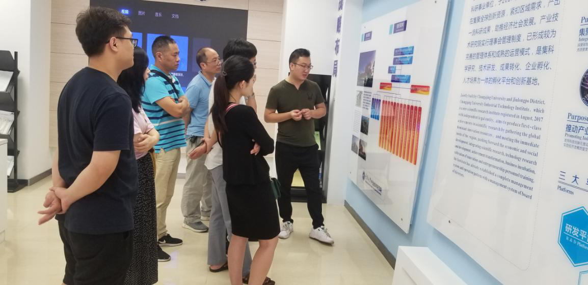 产业技术研究院工作人员带领参观学习高校科技孵化及技术成果转化。司机社
