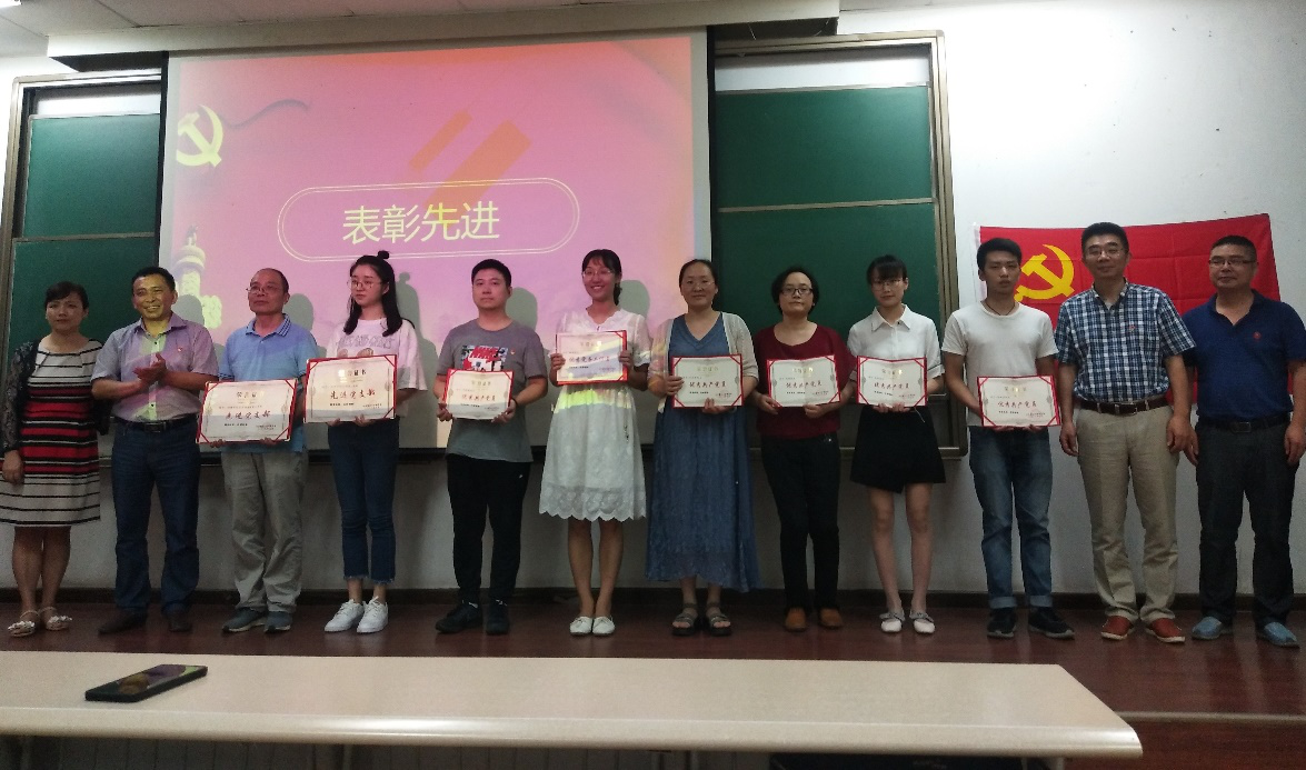 大会共分为三个议程:“七一”表彰、新党员入党宣誓和老党员重温入党誓词、刘云宏书记讲党课。首先,主持人宣读了学校和学院表彰决定,号召全体师生党员向他们学习,时刻以一名优秀党员身份要求自己,真正做到不忘初心,学院领导为其颁奖。