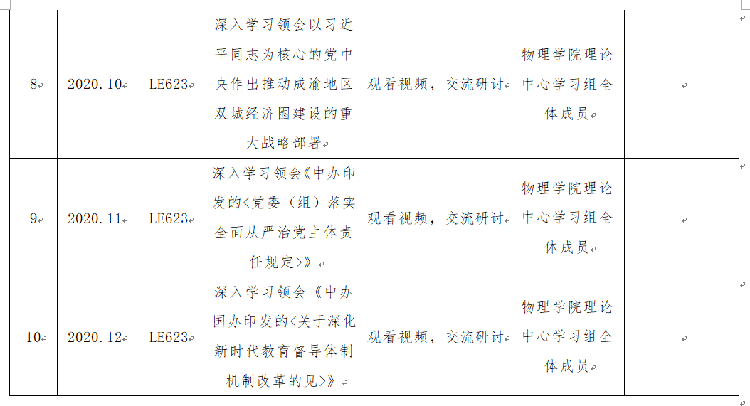 司机社 2020年下半年党委理论学习中心组学习计划表(补充)