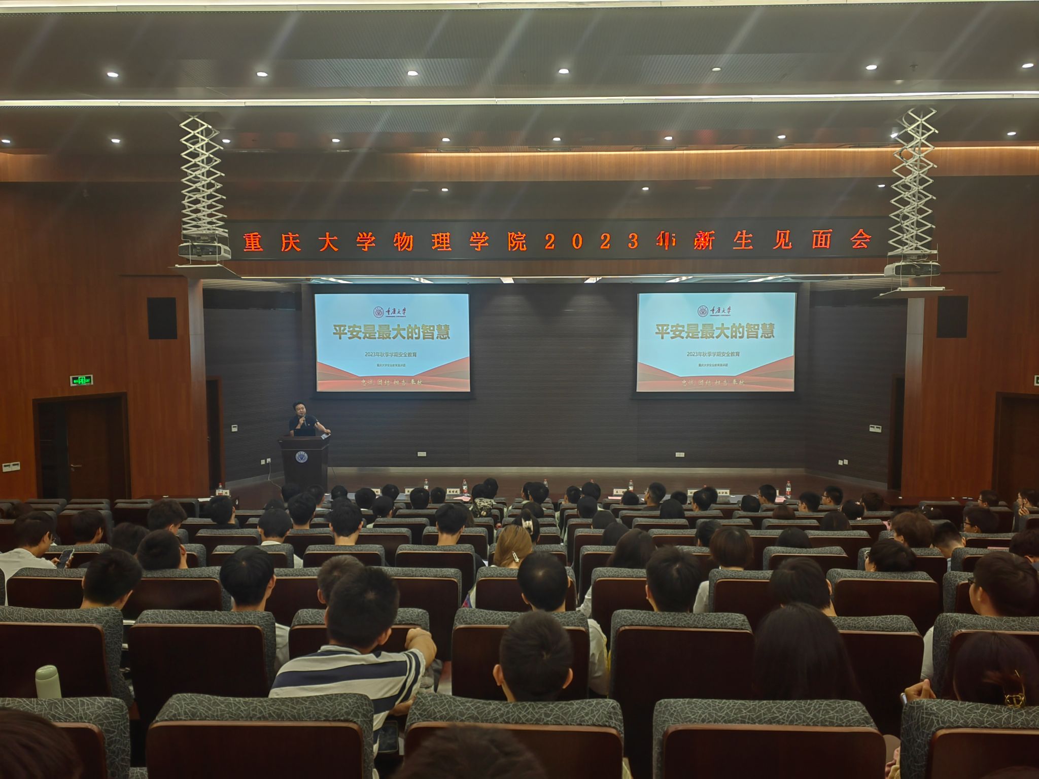 2023年新生见面会圆满落幕。理科楼外秋风瑟瑟,楼里的青年们生机盎然。怀揣一颗赤子之心勇敢地向前冲吧,勇于开始,大有可为。加油重大物理人!