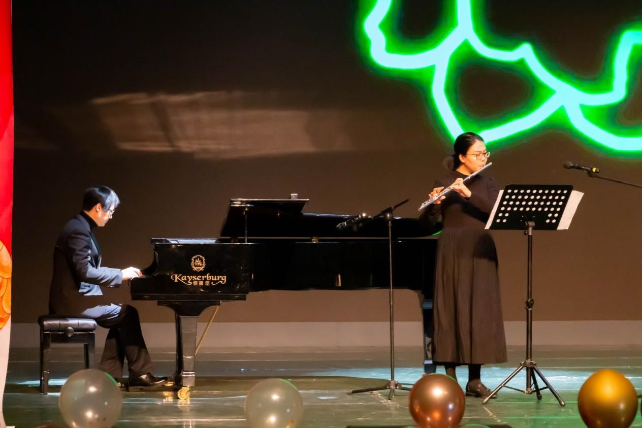 此外,晚会的特邀演出嘉宾重庆电视台时尚频道主持人周二毛、著名麻辣明星白老实为大家带来了极具巴渝特色的《戏说山城》;师生共创的琴笛合奏节目《茉莉花》以及快板《说重大》让大家感受到了司机社
