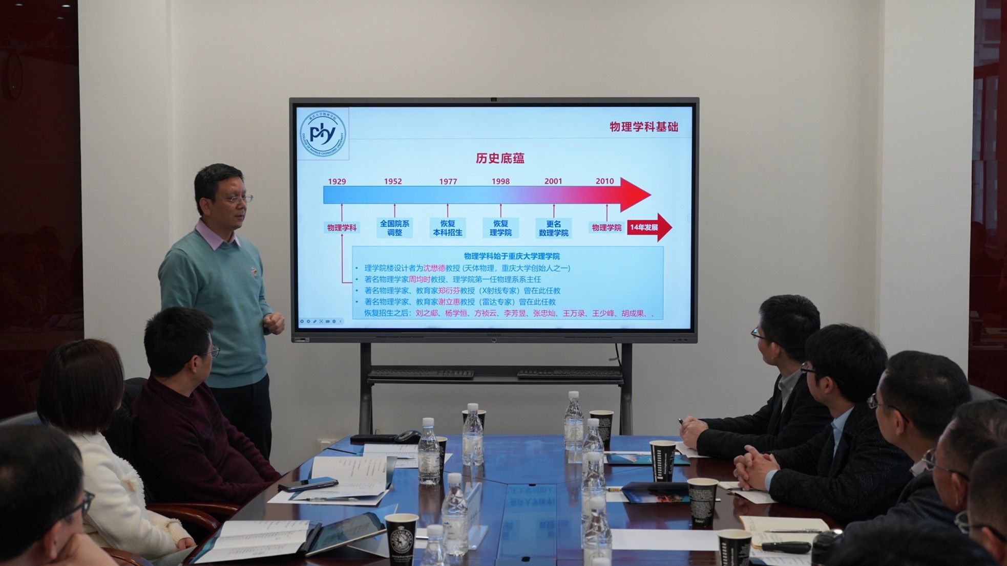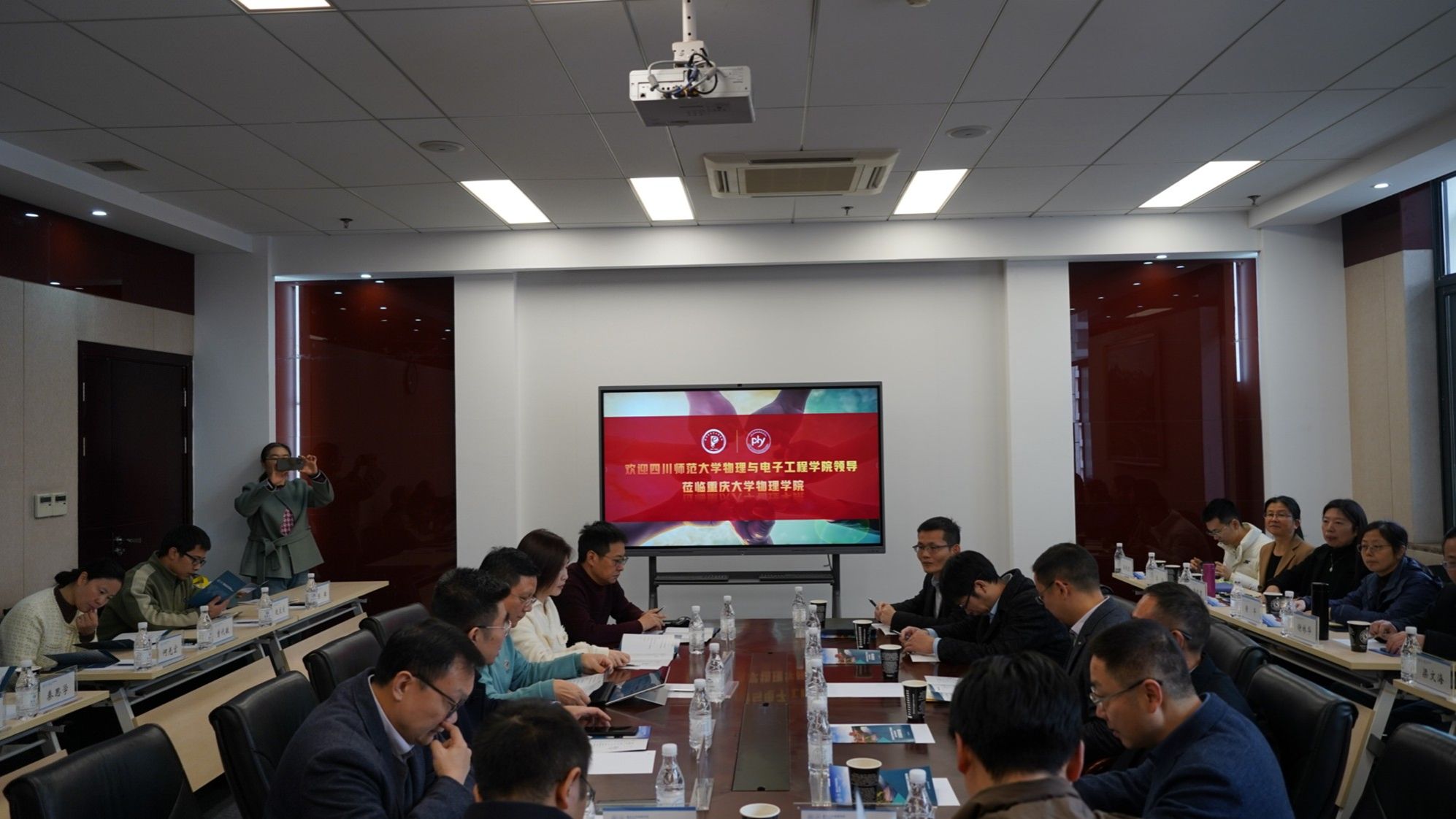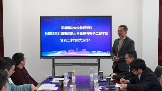 的概况。闫从华则详尽阐述了四川师范大学物理与电子工程学院的学科建设队伍、发展方向、科研平台、实验室建设特色项目以及人才培养成果等。