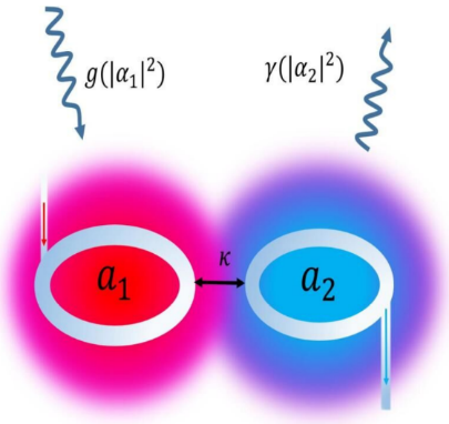 第一单位和通讯单位在德国《物理年鉴》《Annalen der Physik》上发表论文。题目为:“Robust photon transmission in nonlinear parity-time-symmetric cavities”(在非线性宇称-时间(PT)对称性的量子腔中的光子稳定传输)。该工作研究了两个耦合的非PT对称的量子光学腔,创新性地考虑了腔的非线性增益和损耗,发现系统动力学演化在稳态下可自发实现PT对称,从而提高了光子传输效率和稳定性,即不依赖耦合强度(腔之间的距离)和外界光场的频率调制,突破了传统光子的传输机制。