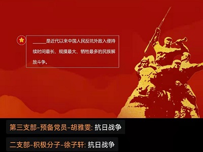 党委组织员、研究生辅导员林玮致词,她对本次线上党史主题活动开展的形式给予了肯定,并对参会的同学提出了鼓励与期望,希望同学们要牢记习近平总书记重要讲话精神,以党的方向为旗帜,以党的信念为力量,以党的历史为磨炼。随后在主持人的带领下,大家观看了党史教育视频,同学们重温我党辉煌的历史。在通过视频学习党史文化知识后,进行了党史知识竞答,此间同学们踊跃参加,充分展现了同学们的热情。
