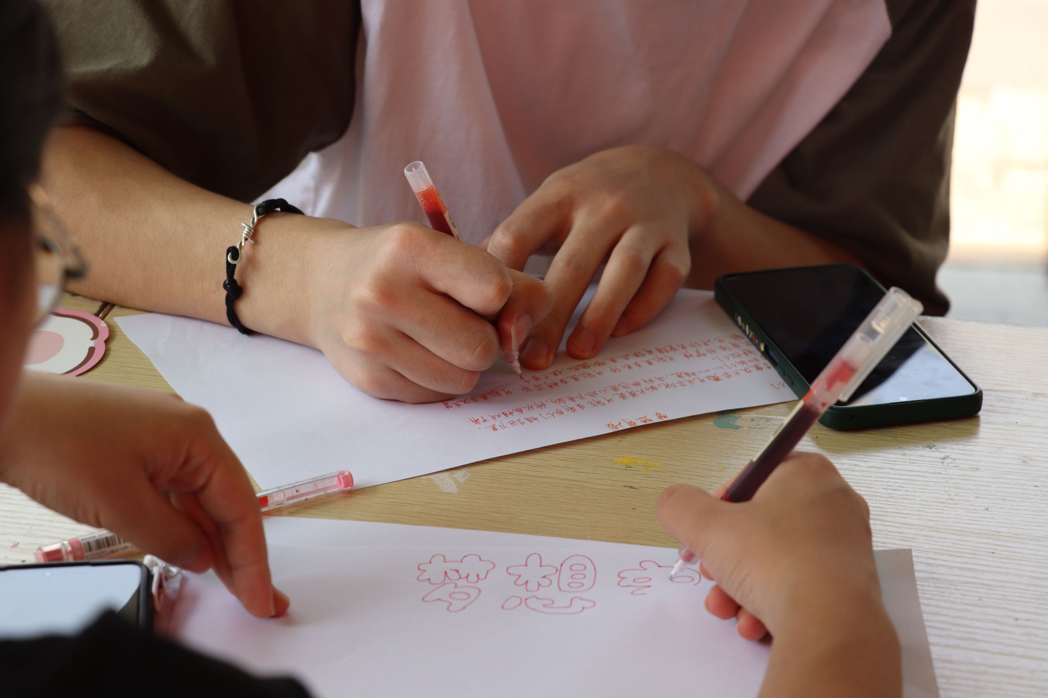 在“梦想名片”制作环节,同学们用心绘制自己的卡通形象,并写下对乡村孩子的寄语和祝福。这些“名片”将由青愿盈梦实践团在暑假支教期间送到乡村孩子们的手中,为他们带去城市的温暖和关爱。