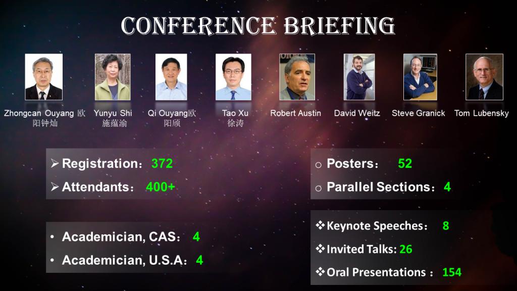 和重庆物理学会承办的第十一届全国软物质及生命物质物理学术会议在重庆隆重举行。此次会议有各高校和科研院所的400余位老师和学生,从全国各地赶到重庆参加此次盛会。大会特邀四位中国科学院院士欧阳钟灿、欧阳颀、施蕴渝、徐涛和四位美国科院院士David Weitz、Steve Granick、Robert Austin、Tom Lubensky出席会议并作报告。本次会议旨在回顾近年来软物质与生命物质研究领域的进展和成果,共商未来中国软物质与生命物质研究的发展大计。