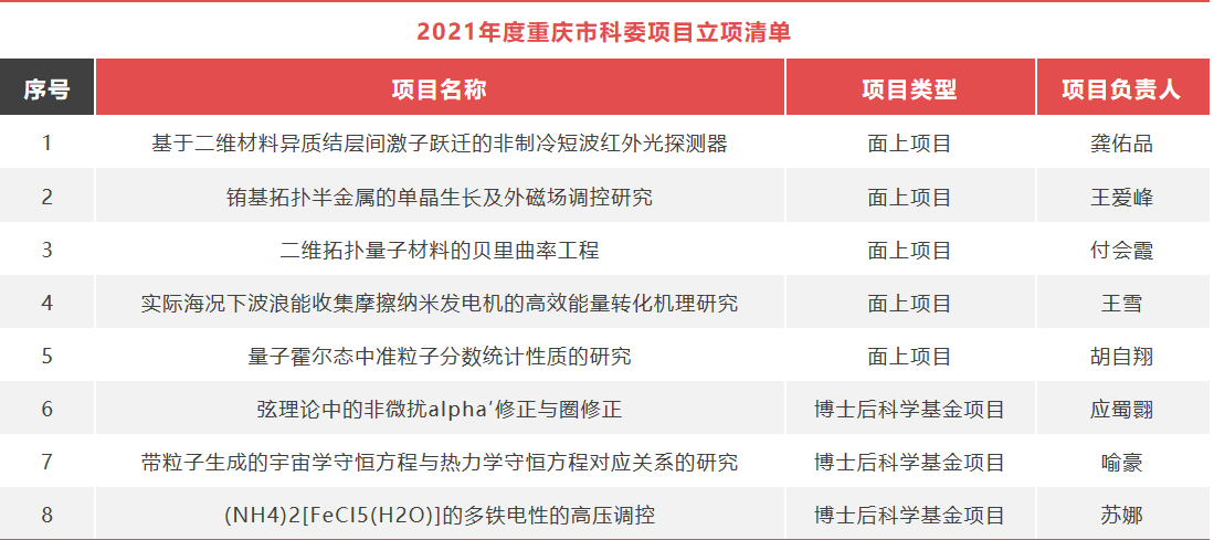 近日,重庆市科技局发布了《2021年度重庆市自然科学基金专项拟立项清单公示》,我院立项重庆市自然科学基金面上项目5项、博士后科学基金项目3项(见附表)。据悉,司机社 共立项2021年度重庆市自然科学基金面上项目106项、博士后科学基金项目46项。