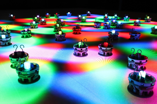 在该研究工作中,机器人被赋予独特的遗传、变异和自然选择的机制,从而将生物进化系统中最重要的因素引入到机器人群体中。结合动态可编程的光学环境,使机器人群体能够感知环境和改变环境,从而诱发复杂的群体适应性行为。