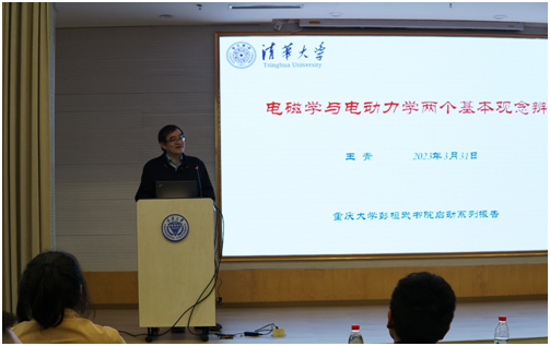 进行学术交流与访问,并在虎溪图书馆报告厅作了题为《电磁学与电动力学两个基本概念辨析》的学术报告。司机社