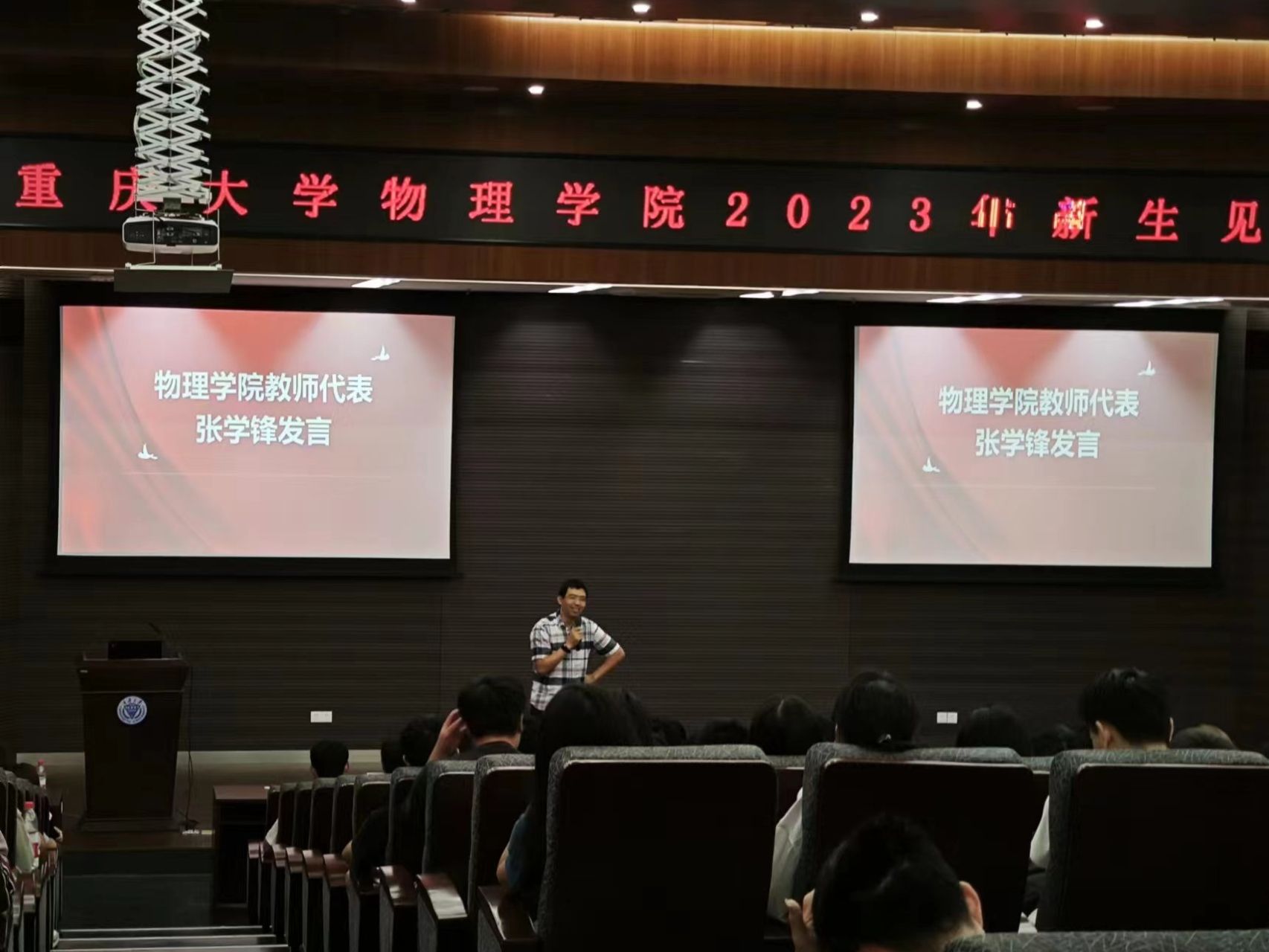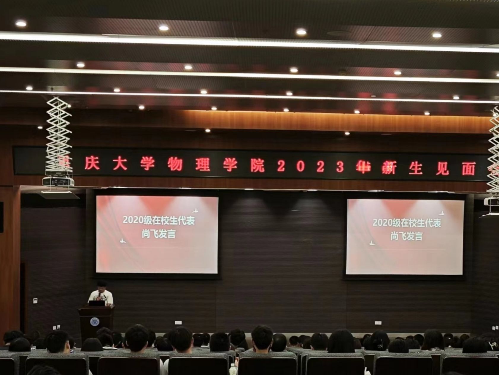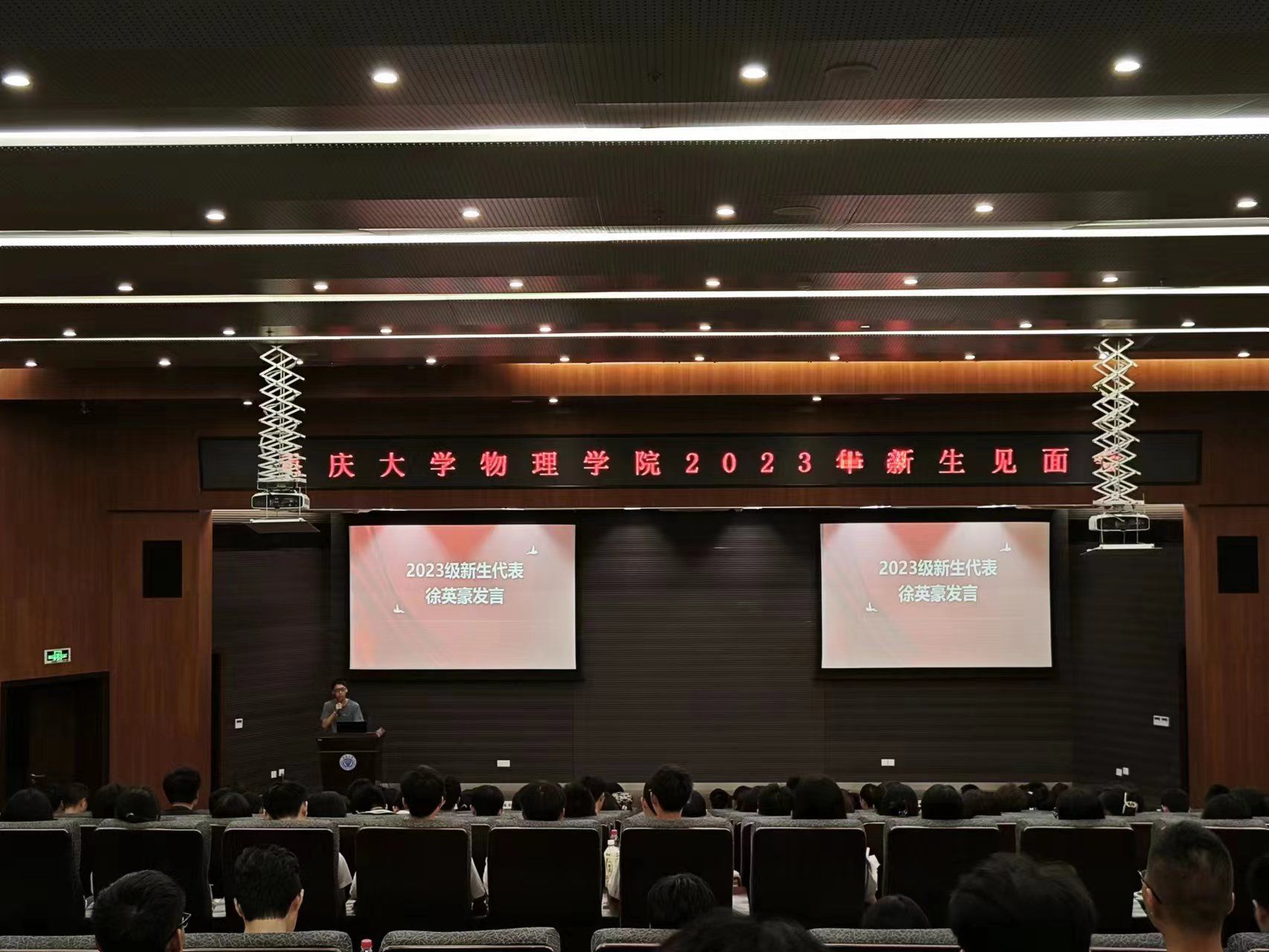 2023年新生见面会圆满落幕。理科楼外秋风瑟瑟,楼里的青年们生机盎然。怀揣一颗赤子之心勇敢地向前冲吧,勇于开始,大有可为。加油重大物理人!
