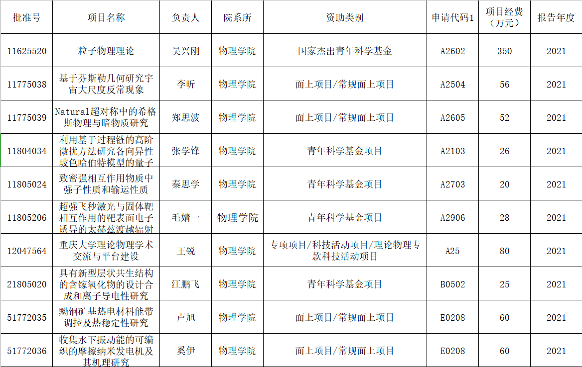 2021年国家自然科学基金结题项目材料公示