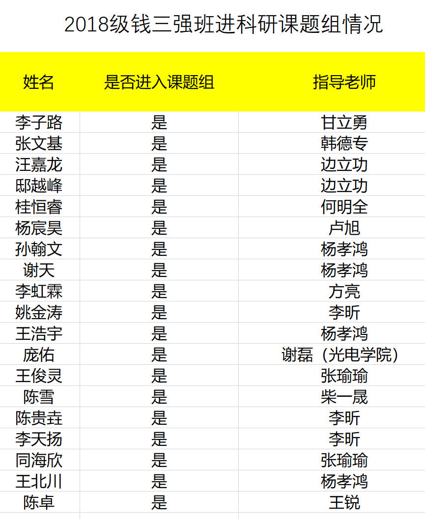 3. 截止2020年09月,班级所有同学进入学院相关老师课题组,并着手开展研究工作;部分同学研究成果突出,将近期发表;